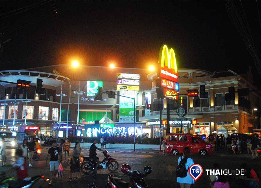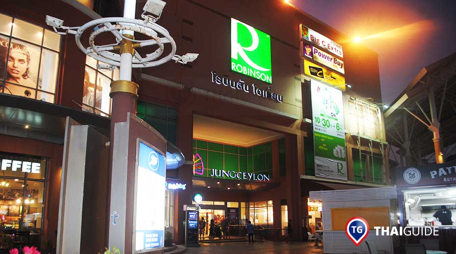 Стоящий в центре города, по диагонали напротив улицы Bangla Road, торговый комплекс «Jungceylon» радикально изменил представление о шопинге на Патонге. Два основных магазина в комплексе, это «Робинзон» – блестящий, хорошо освещенный универмаг и супермаркет «Big C».
