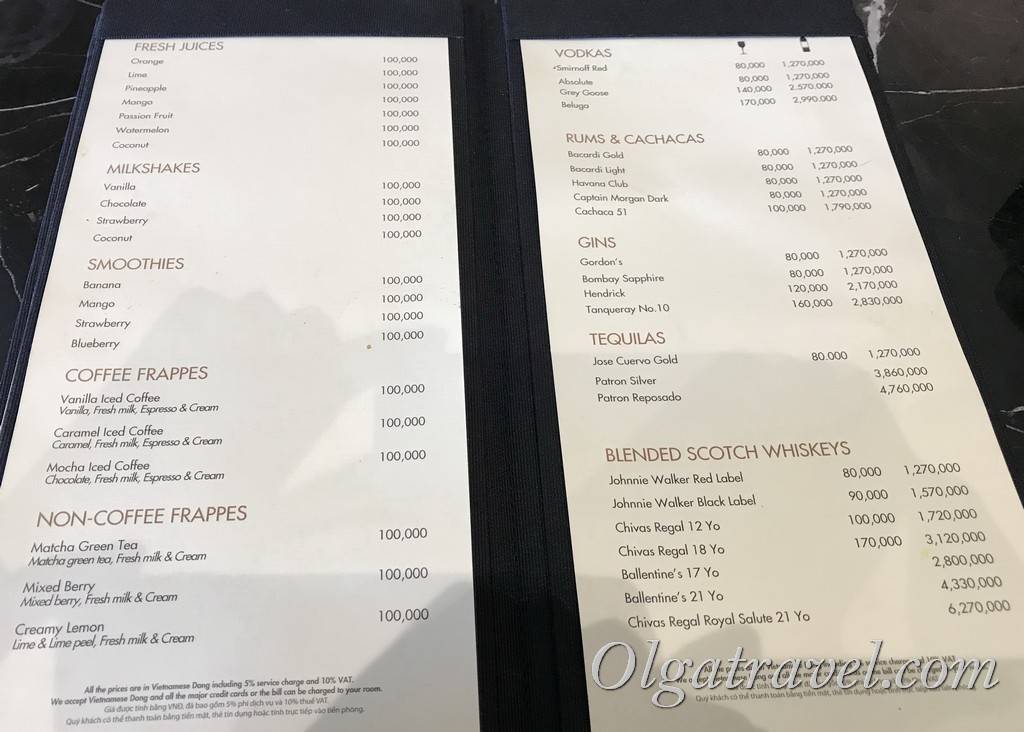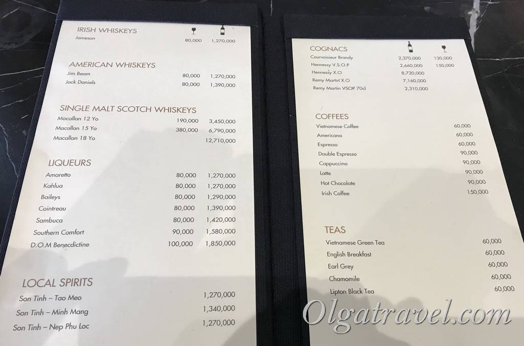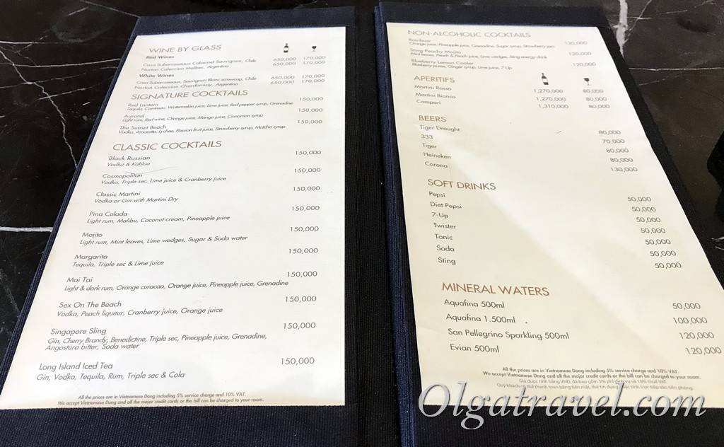 Цены в отеле довольно высокие, но не такие заоблачные, как я думала, когда читала отзывы о ВинОазис Фукуок резорт перед поездкой Цены вполне сопоставимы с тайскими на каких-нибудь островах. Вот некоторые цены в барах: