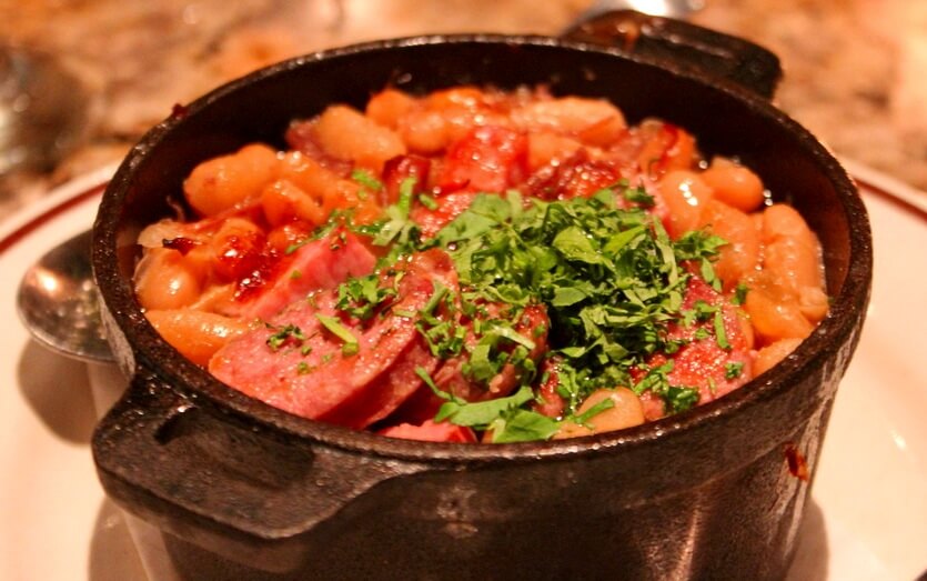 Нечто среднее между рагу и запеканкой. Кассуле – это первое, что нужно покушать во Франции ценителям сытных блюд, в составе которых присутствует фасоль. Основу этой французской еды составляет утятина, гусятина, свинина или другое мясо – в зависимости от региона. Вегетарианцы могут попробовать во Франции кассуле на основе овощей, любители морепродуктов – с креветками. В составе густой похлебки есть фасоль, в нее часто добавляют зелень, томаты, лук. Блюдо обязательно запекают в специальном горшочке. Получается очень наваристое, ароматное, нежное рагу с фантастическим вкусом.