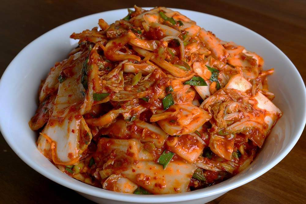 Кимчи. Самое известное и очень популярное блюдо, состоящее из квашенной в красном перце пекинской капусты. Существует множество разновидностей этого блюда: из редьки, кольраби, огурцов, баклажанов, редиса, приправленные чесноком, имбирем, луковым соком, и т.д. Из кимчи варят супы, заворачивают ее в блины и т.д.