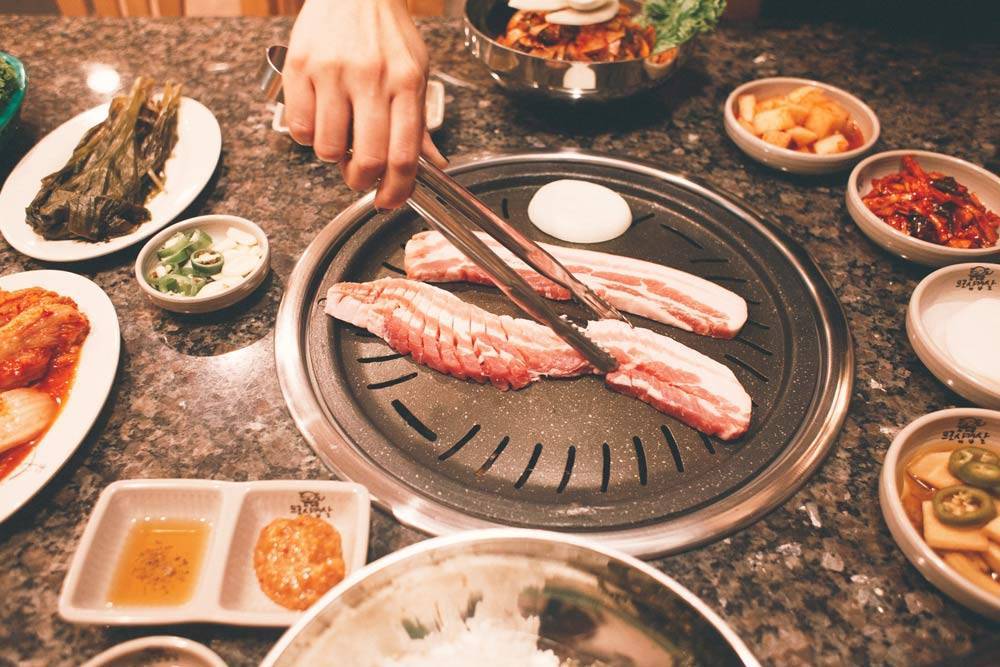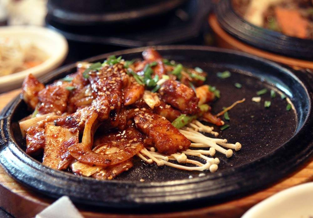 Самгёпсаль. Жареная нарезка из свинины, подаваемая с овощами и разнообразными закусками. Очень популярное блюдо. Настолько, что своей свинины в Корее не хватает, и ее импортируют в страну.