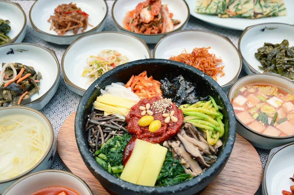 Пибимпап. Очень легкое в приготовлении и очень популярное блюдо из риса с овощами, травами, яйцом и различными соусами. Это блюдо включено в меню авиакомпаний, осуществляющих перелеты в Южную Корею.