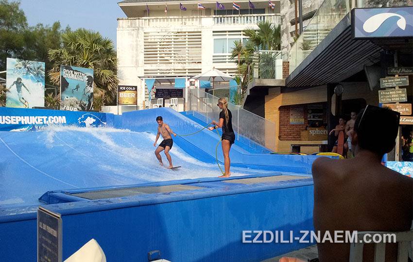 Забавный бар в южной части пляжа Ката – настоящий аттракцион, где любой может поучиться флоубордингу (флоурайдингу). Здесь на искусственной волне можно потренировать навыки балансирования на доске. Впрочем большинство гостей – зрители. В “Surf House” приятно сидеть вечерами, пить пиво и наблюдать за смешными кульбитами новичков-серфингистов.