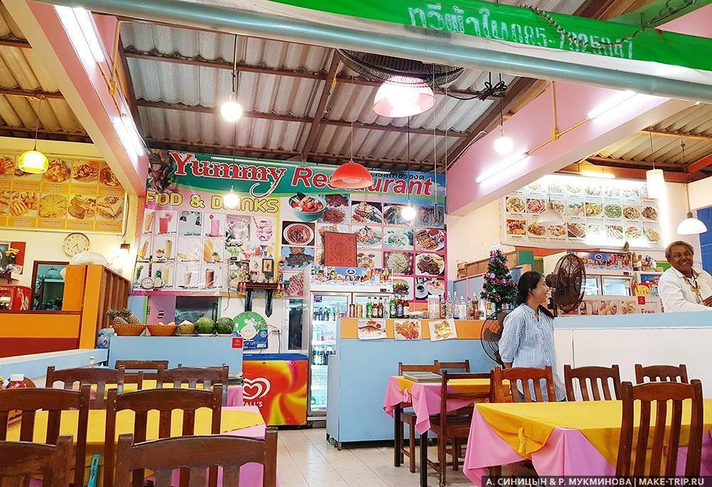 Уличные кафе и фудкорты. Тут можно поесть по приемлемым ценам: основные блюда с мясом или морепродуктами стоят от 80฿! Правда, напитки — от 70฿. В таких кафе мы питались на Сурине и Кароне. Исключение — пляж Най Харн, где цены высокие везде.