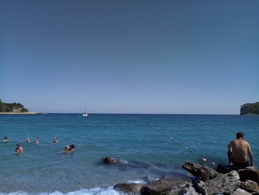 В июле и августе. Температура воздуха днем — от +30 до +36°C, ночью — от +20 до +22°C. Температура воды — от +24 до +27°C.