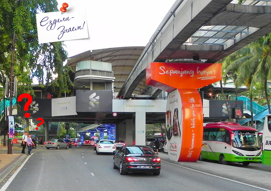 Почти во всех городах мира мы привыкли, что можно переходить дорогу через станцию метро или монорельсы. Но в Куала-Лумпур вы легко встретите станции, где перейти на другую сторону улицы можно только через турникет — то есть надо заплатить за проход, пройти на станцию и только через нее можно выйти на другую сторону дороги.