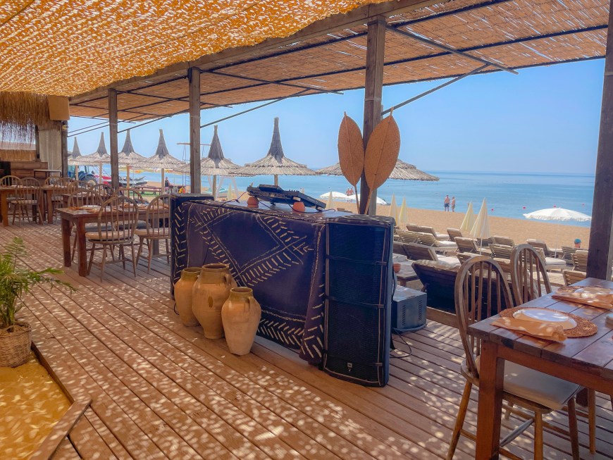 Слева от старого города пляжи широкие, свободные, с мелким песочком. Море достаточно глубокое. Здесь есть несколько пляжей от отелей, несколько ресторанов, но в целом очень много свободного места, чтобы просто расположиться на песочке на своем полотенце. Стоит только учесть, что тени здесь не найти.