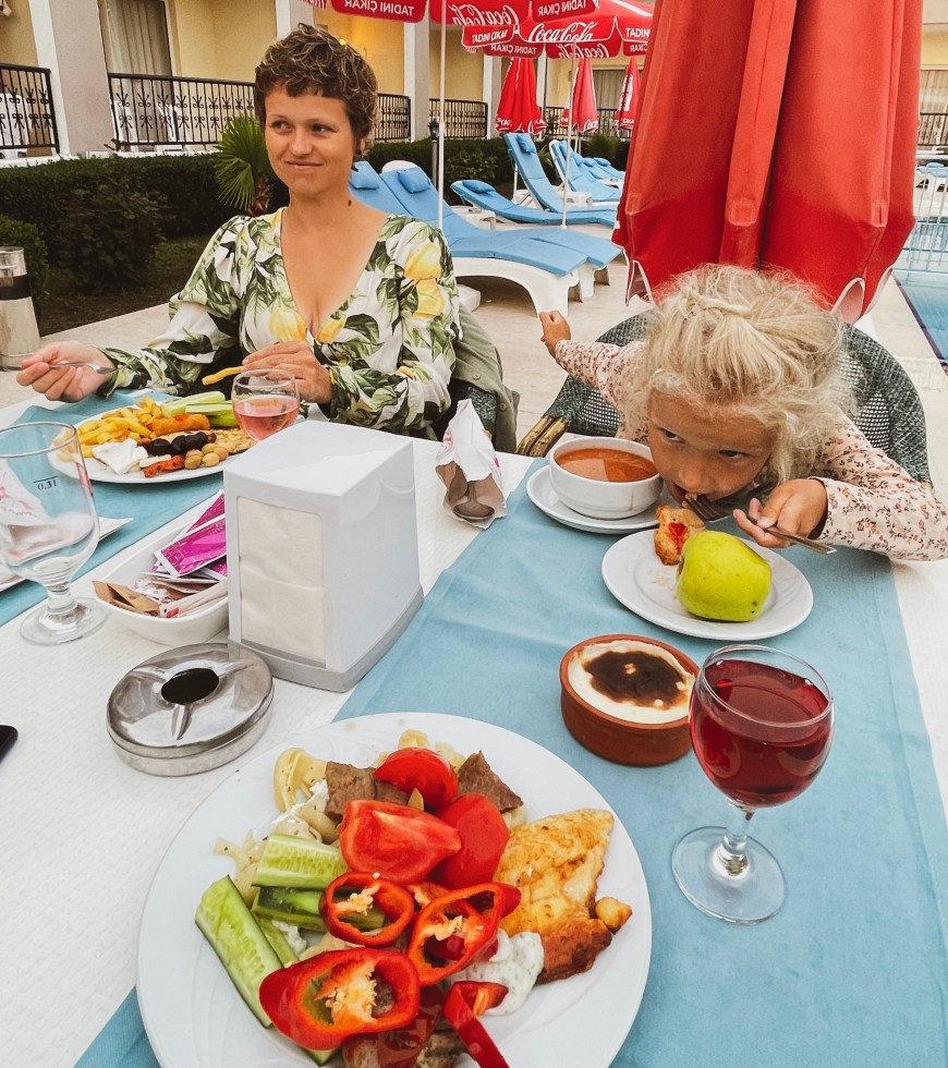 Питание «Ультра Всё Включено». Всего достаточно: мясо по 4–5 видов в разных формах приготовления (гриль, соте, фритюр, котлеты, стейки и т.д.), рыба белая и красная, кальмары и креветки ежедневно, овощи и гарниры с немыслимых количествах, фрукты до 10 видов. Мороженое безлимитное в барах и на пляже. Хороший детский буфет с йогуртами, творожками, молоком.
