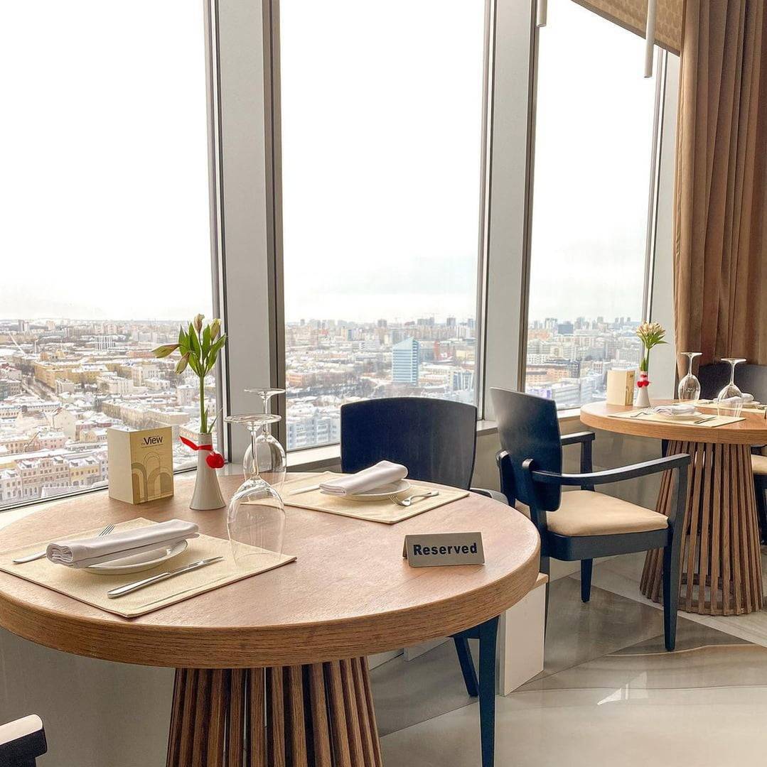 Ресторан авторской и европейской кухни The View, расположенный на Немиге. Изысканный интерьер и красивая подача блюд – это не единственный повод посетить заведение. Главная фишка — это место находится на 28 этаже. Из больших окон можно будет наслаждаться красотой города во время обеда или ужина. Также есть терраса, где можно будет сделать красивые фотографии.