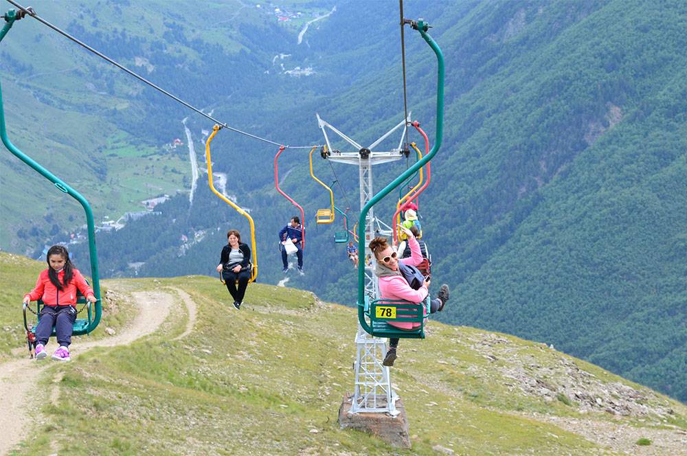 Куда ни глянь – со всех сторон кафе-ресторан «Ай» (конечно, вид его давно лишен былого советского пафоса, но зато кухня отменная) окружен вершинами гор. Зимой они покрыты белоснежной периной, из-под которой то и дело проглядывают каменные нагромождения и опоры канатной дороги, а летом – это изумрудный рай, дарующий свежесть и прохладу.
