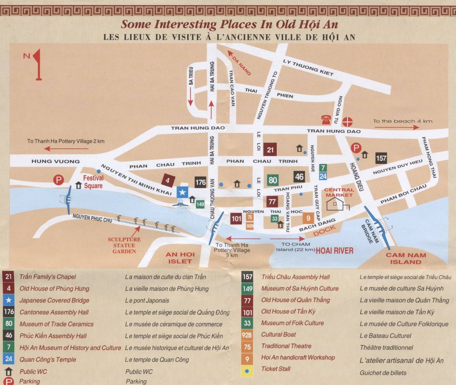 Помимо моста, в Хойане множество достопримечательностей: храмы, пагоды и многочисленные залы собраний жителей города. Все они отмечены на карте, которую выдают бесплатно в информационных точках города. Там же можно купить и билетики на достопримечательности. Необычно то, что билеты продаются оптом, минимум на человека можно купить билет на 5 объектов посещения (любых), которые будут стоить 120 тыс. донгов ($5,5). В этом же информационном киоске продавцы отметят для вас самые интересные достопримечательности.