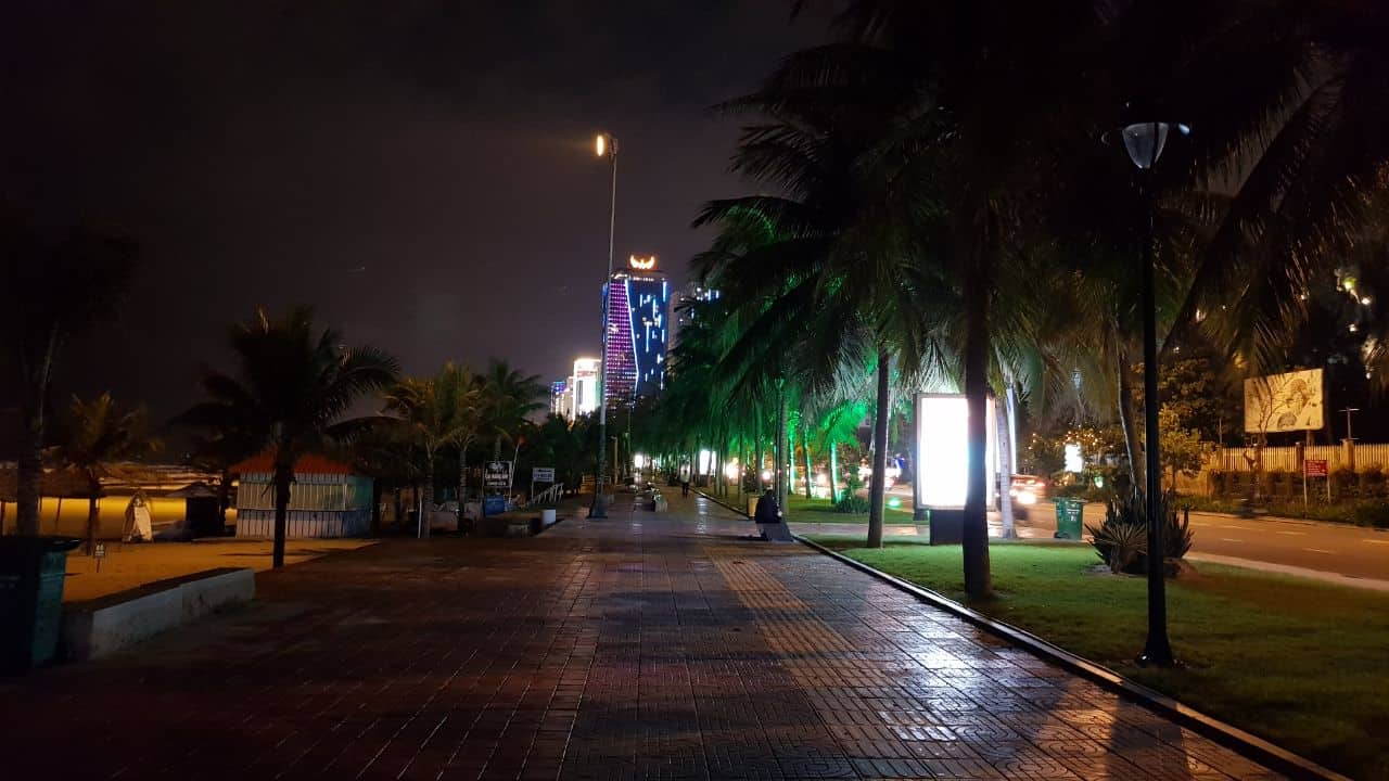 Вдоль пляжа отличная просторная набережная, по которой можно гулять, бегать или просто отдыхать на скамейках. Это действительно круто, потому, что ничего подобного нет ни на Бали, ни на Пхукете. Набережная есть только в Паттайе, но гулять по ней не очень приятно. При этом, в данный момент город не перегружен туристами. Здесь нет пакетников из России, а китайцы и корейцы, которых сюда привозят турами, путешествуют организованными группами. Обычно их возят в автобусах, а по улицам они не ходят вообще.