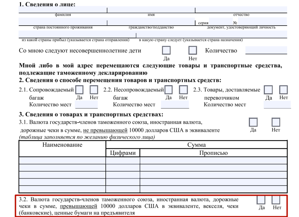 наличия ввозимой суммы. Во время прохождения таможни гражданин получает бланк,