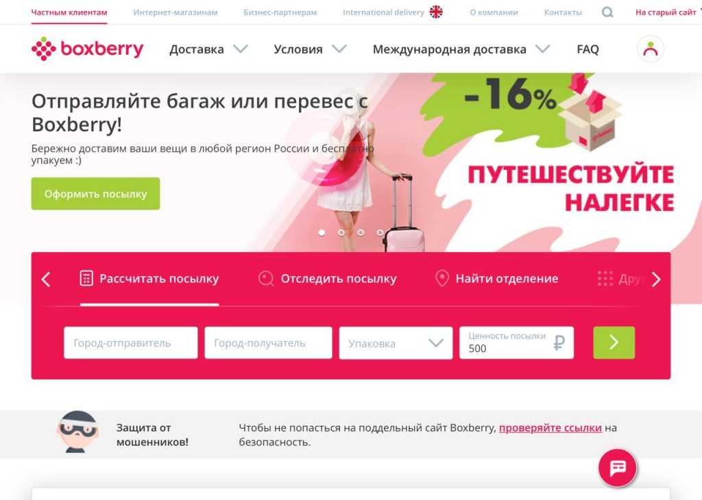Боксберри, компания, основанная в 2010 году. Фото главной страницы.
