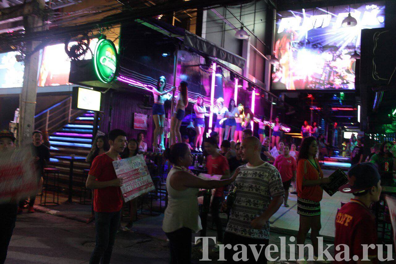 Следующее место, куда нужно сходить на Патонге самостоятельно вечером, это Бангла Роуд. Если вы не любитель такого рода развлечений, то можно не заходить ни в один бар или клуб, а хотя бы просто пройти по этой улице один раз. Если же вы тусовщик, то уверена, что придете посмотреть на Патонге Бангла Роуд еще не раз. Помимо туристов, вы здесь увидите все грехи Таиланда: девушек легкого поведения, трансвеститов, танцовщиц и шоуменов, увидите старых европейских дедушек с молодыми тайками, сможете посетить пикантные шоу, и много ещё чего. 🙂 Чтобы посетить знаковые места с опытным гидом и компанией, можно взять турне по ночной развлекательной жизни Пхукета.