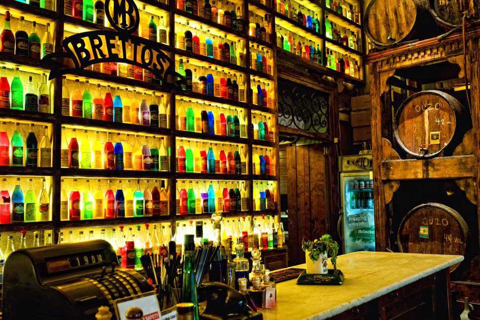 Это старейший бар в Афинах, находится в нескольких шагах от Акрополя. Место пользуется колоссальной популярностью горожан из-за своей истории, камерной атмосферы и стены с разноцветными бутылками, которую фотографировал каждый. Вечерами здесь играет спокойная музыка, греки выпивают традиционные узо, наливки, цикудьи, ликеры, вина, рецины, коньяк и ракомело. Коктейльная карта включает более 150 позиций: есть культовые и авторские напитки.