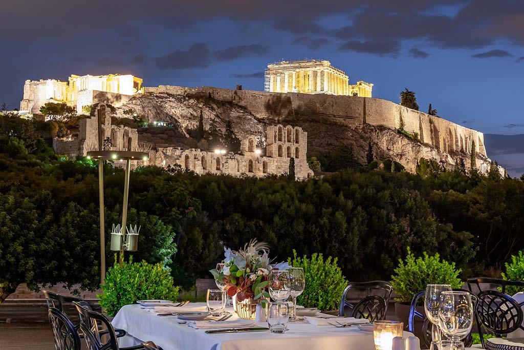 Один из самых шикарных ресторанов Афин. Сюда стоит отправляться на романтическое свидание или же на празднование особого повода. Ужин на двоих стоит около 100 €, если закажите вино, добавляйте еще 20. Зато получите первоклассное обслуживание, кухню от знаменитого шеф-повара и волшебный вид на Акрополь.