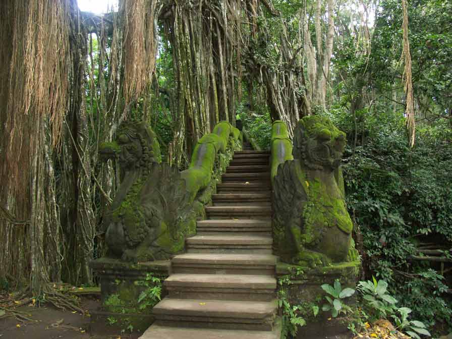 Лес обезьян настолько плотный, что сюда почти не проникает солнечный свет и погода постоянно влажная и душная. По дороге все время встречаются статуи зверей и местных духов, а добравшись до середины, вы найдете древний храм мертвых, который называется «Пура Далем». Здесь местные жители устраивают обряды прощания с умершими собратьями.