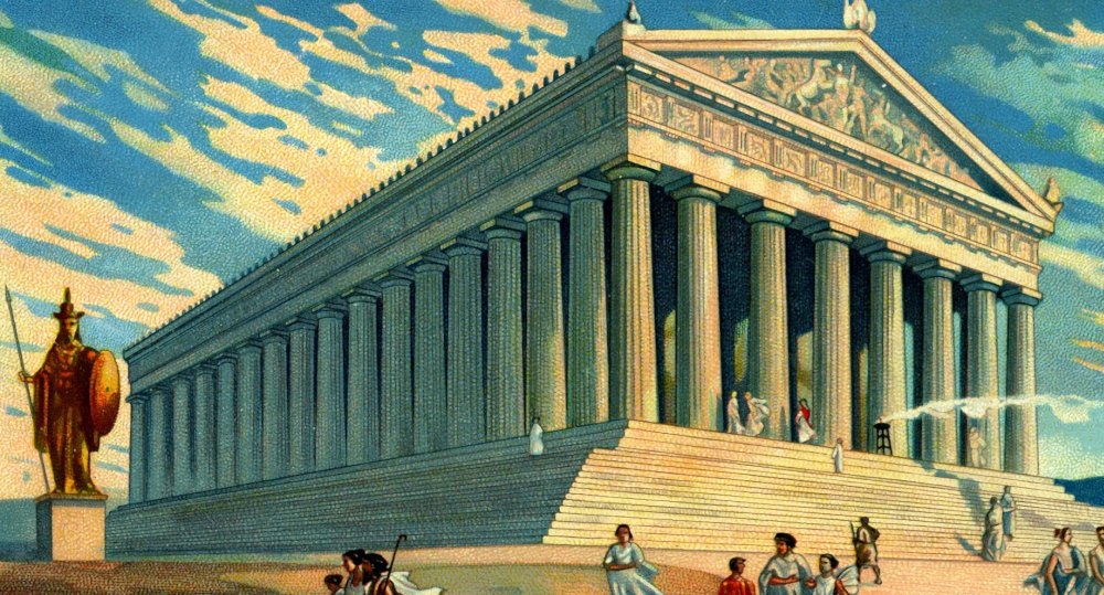 Парфенон в афинском Акрополе считается главным храмом. Он воздвигнут в честь прекрасной и мудрой богини Афины — любимой дочери Зевса. Греки считали её самой могущественной после Зевса, почитали как покровительницу справедливых войн, искусств, наук и ремёсел. Для всех девушек эта богиня была особенно почитаема, поскольку также была их покровительницей и соблюдала безбрачие. От имени Афина Парфенос, что значит Афина-Дева, и назван храм.