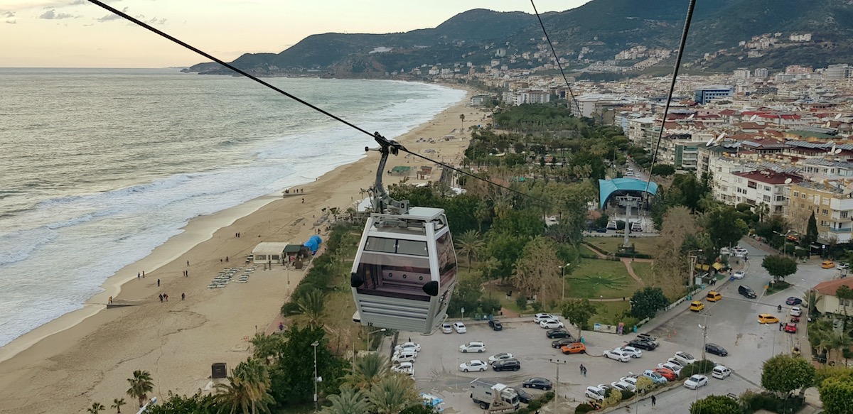Время в пути всего 5 минут, длина 830 метров. Виды с канатной дороги открываются фантастические на пляж Клеопатры и Дамлаташ, саму Аланию и Средиземное море. На этом приключения не заканчиваются и наверху можно побродить по территории крепости и посидеть в кафе.
