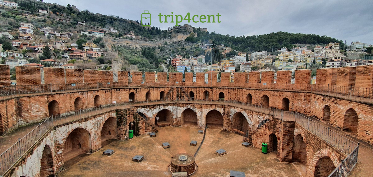 Крепость видна со всех уголков Алании и возвышается на 250 метров над городом. Длина ее стен 6,5 км. Она включала 140 бастионов, 93 башни, монастырь, мечеть.