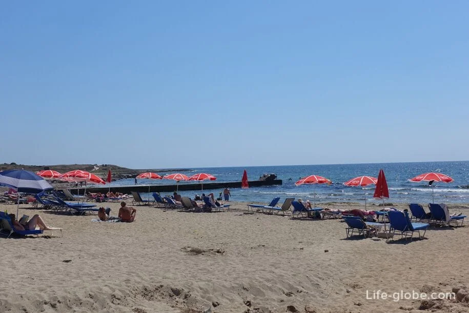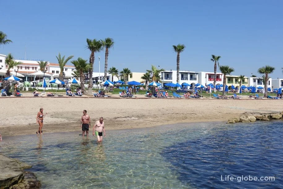 Пляжи в этом районе преимущественно смешанные – песчаные, песок + галька, также в воде и на самих пляжах часто присутствуют каменистые выступы. Подробнее обо всех пляжах Пафоса и Героскипу…