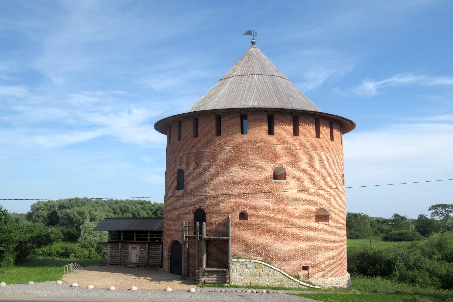 Некогда Великий Новгород был окружён плотным кольцом оборонительных, защитных сооружений. Единственной постройкой такого характера, сохранившейся до современной эпохи, является эта башня, возведённая в XVI в. Высота каменного строения доходит до 15 метров при общем диаметре — 17. Почти 100 лет этого сооружения практически не существовало: в начале прошлого века укрепление пришло в упадок, а восстановительные работы начались лишь в 90-х гг. Другое распространённое название — Белая башня — появилось после средневековой реконструкции, когда фасад был выкрашен белилами. Имя Алексея, фигурирующее в одном из вариантов наименования, форт получил от церкви, освещённой в честь благословлённого, поцелованного Богом, человека.