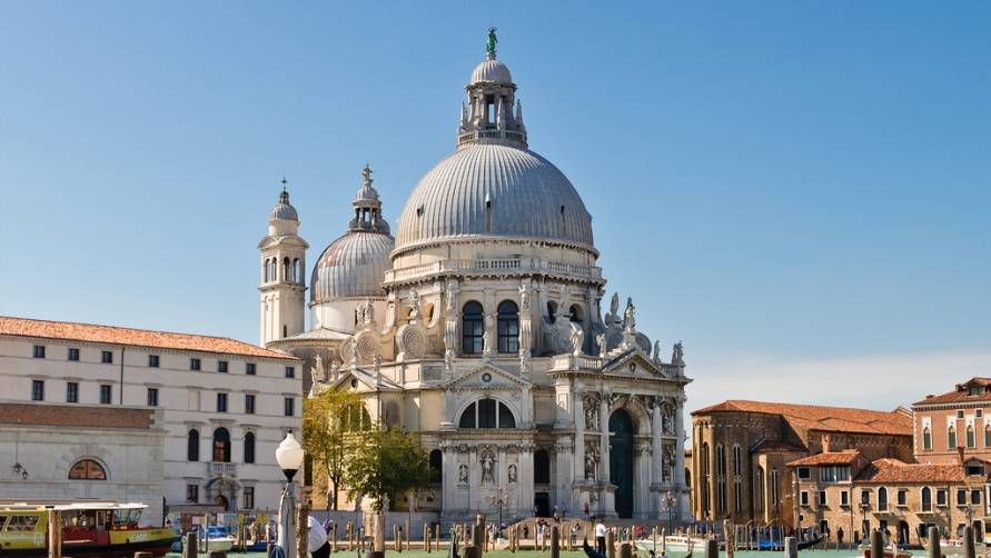 В устье Гранд-канала возвышается церковь Санта-Мария-делла-Салюте. Храм был воздвигнут в 17 веке, чтобы избавить город от очередного нашествия чумы. Ежегодно 21 ноября венецианцы приходят помолиться и поблагодарить заступницу, для этого устанавливается понтонный мост. Особенно красиво этот храм смотрится вечером.