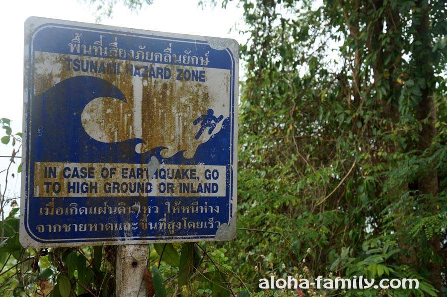 Предупредительная табличка о возможном цунами возле Ао Нанга (нашли «самую чистую»)))