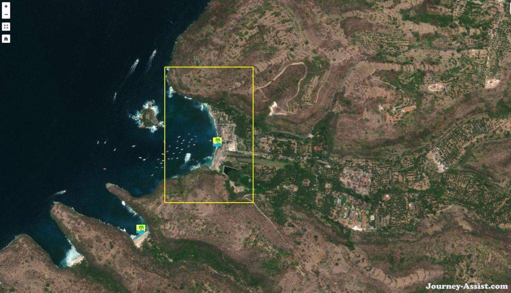 Пляж Кристал Бэй на спутниковой карте Нуса Пениды. Бали