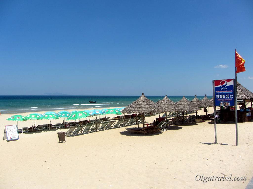 На пляжах Дананга отлично развита инфраструктура: есть лежаки с зонтиками, кресла, кафе, бесплатные души и туалеты. Стоимость лежака – 30 000 VND, кресла – 23 000 VND. Здесь также можно купить свежие фрукты у разносчиков – кокос от 30 000 VND (в жару прекрасно утоляет жажду).
