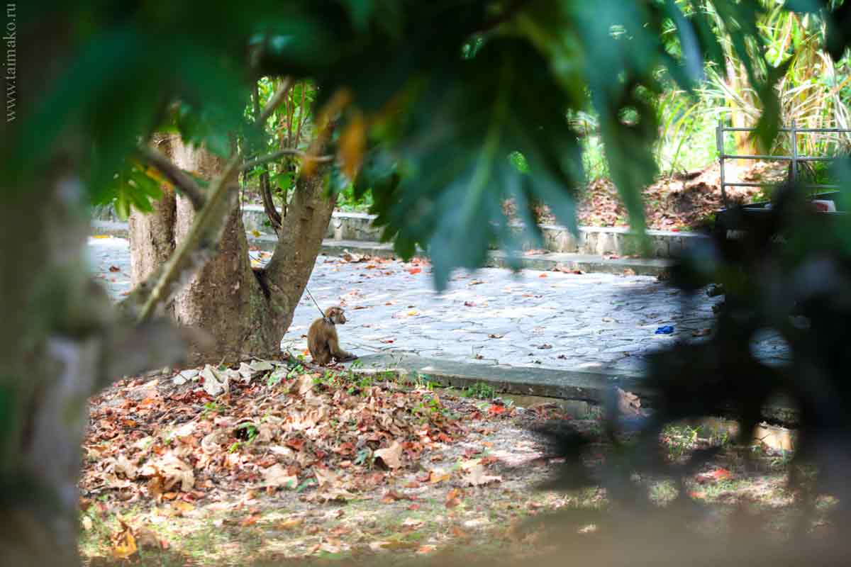 Сбегала за фотоаппаратом, сфотографировала и задумалась — откуда здесь взялись обезьяны и с какой целью их, бедняжек, привязали к дереву в такую жару. Захотелось посмотреть на них поближе и через пару секунд я уже выбегала из дома с фотоаппаратом в руках.