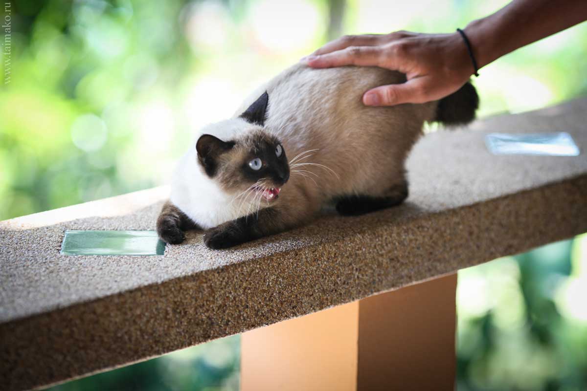 На животном красовался ошейник с бубенчиком, явно оно принадлежит к сборщикам кокосов. Её привезли сюда по звонку нашего соседа тайца. В одно солнечное, но ветреное утро, он вышел в свой сад, о котором ежедневно заботится, глянул на свои высоченнущие пальмы и решил, что это опасно ходить под гроздями таких огромных и похоже уже созревших кокосов. Обезьянка, вероятно, приехала, чтобы добраться до этих заветных «коконатов» — так их называют тайцы, когда объясняются на своей смеси английско-тайского.