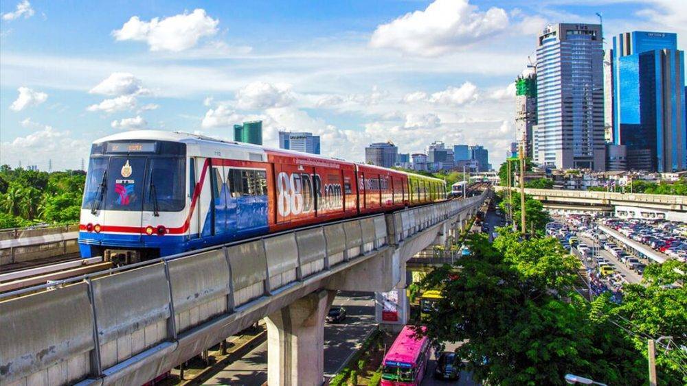 Система наземного метро SkyTrain (BTS), пересекающая весь Бангкок через центр, является самым быстрым, удобным и безопасным способом проезда по Бангкоку. 2 линии этого эстакадного метро были открыты в 1999 году, а все техническое оснащение было поставлено концерном «Сименс». Это значительным образом облегчило жизнь жителям и гостям тайской столицы, так как теперь вместо того, чтобы стоять в многокилометровых пробках, можно воспользоваться «наземкой», работающей с 6:30 утра до полуночи, интервал движения которой составляет в среднем 3–6 минут, а в часы пик — 2 минуты. Современные комфортные электропоезда с широкими вагонами с кондиционированным воздухом обладают практически 100% надежностью. Каждый состав длиной 65 метров способен перевозить до 1000 человек, движение их автоматическое.
