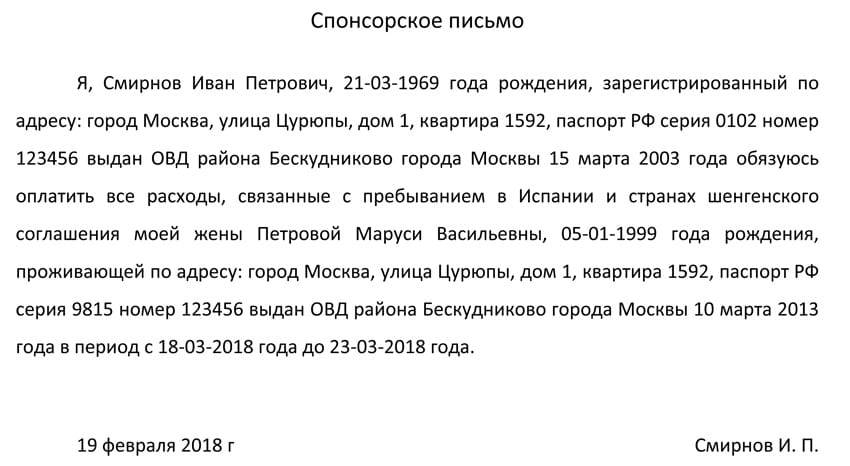 - Спонсорское письмо предоставляют только близкие родственники заявителя (мать, отец, супруг/супруга или дети);