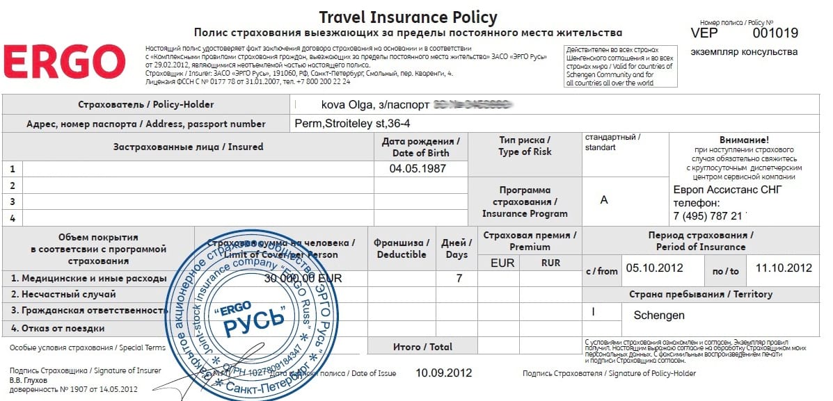 - Полис оформлен специально под поездку, Испания и страны шенгена указаны в ней в качестве зоны покрытия.