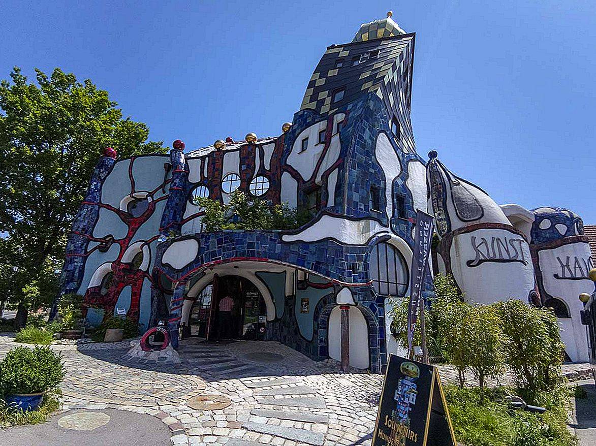Kunst Haus – это уникальный дизайн Питера Пеликана, венского архитектора, который работал с Хундертвассером и держал здания вокруг пивоваренного завода в духе стиля Хундертвассера.