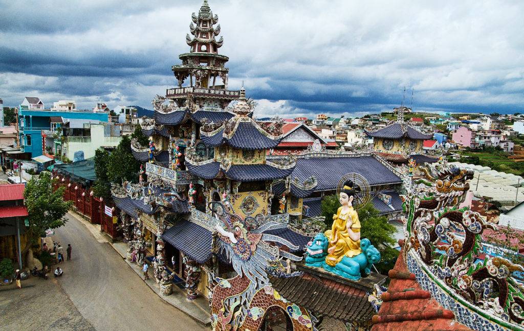 Пагода Линь Фуок — отличная мозаичная керамическая архитектурная достопримечательность города Далат. Монахи пагоды покажут вам, как следовать традиции написания желания на листе бумаги и приклеивать его к центру колокола.