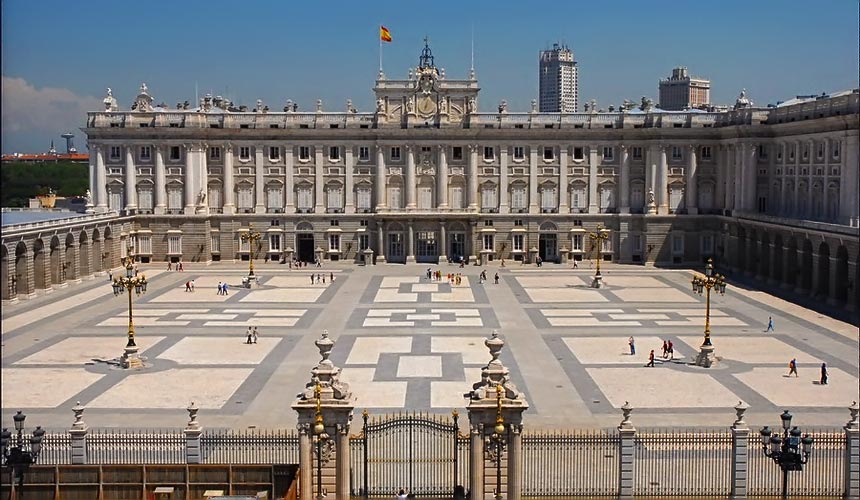 На месте крепости эмиров Кордовы и Толедо высится королевская резиденция испанских монархов. Дворец несколько раз горел, поэтому при восстановлении его возвели полностью из камня и отказались от деревянной отделки. Если над дворцом в Мадриде реет испанский флаг, это значит, что Филипп VI – король Испании, находится в резиденции. В королевском дворце расположился музей, стоимость его посещения составит 10 евро.
