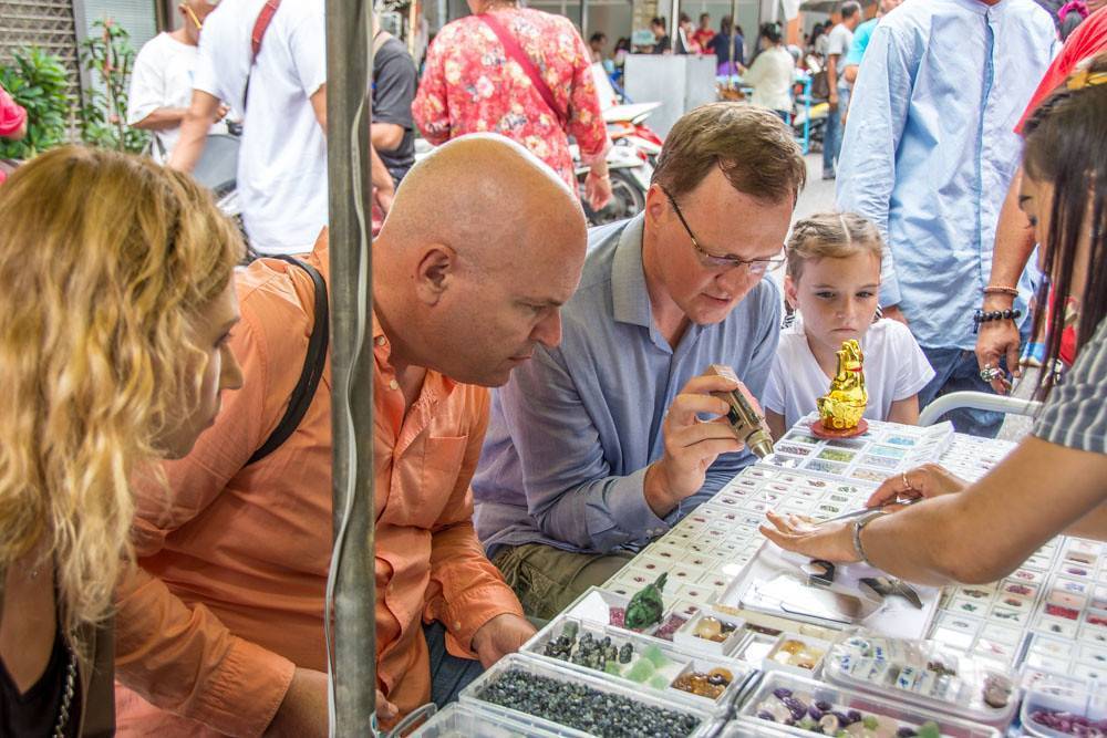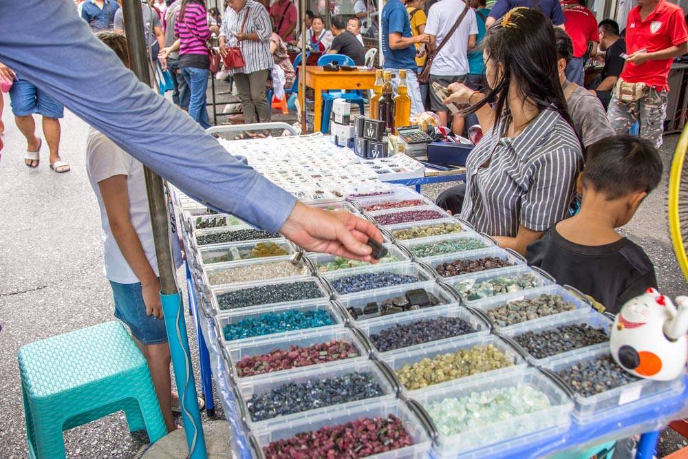 К западу от Трарат от перекрестка идет Сичан-Роуд – на ней расположена масса частных магазинчиков различного уровня и размера, которые торгуют камнями, предоставляют услуги по подбору, а кое-где – предлагают услуги огранщика.