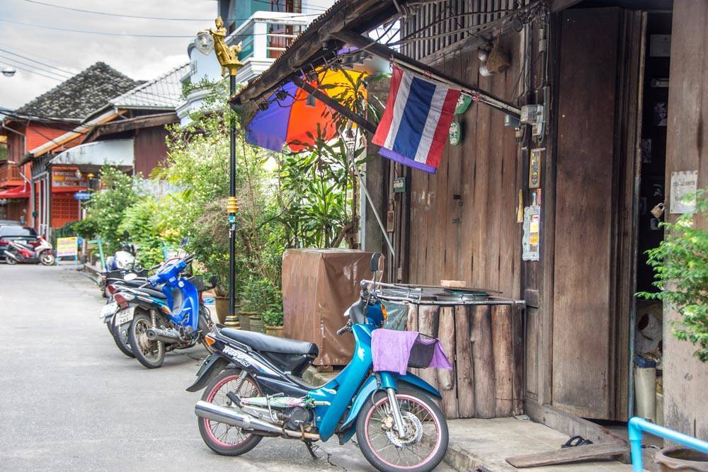 Если гулять на юг от центра квартала вдоль реки, картинка схожая. Суверины, фрукты, китайский храм, фонарики, мотобайки, деревянные шоп-хаусы. По-моему, отлично.