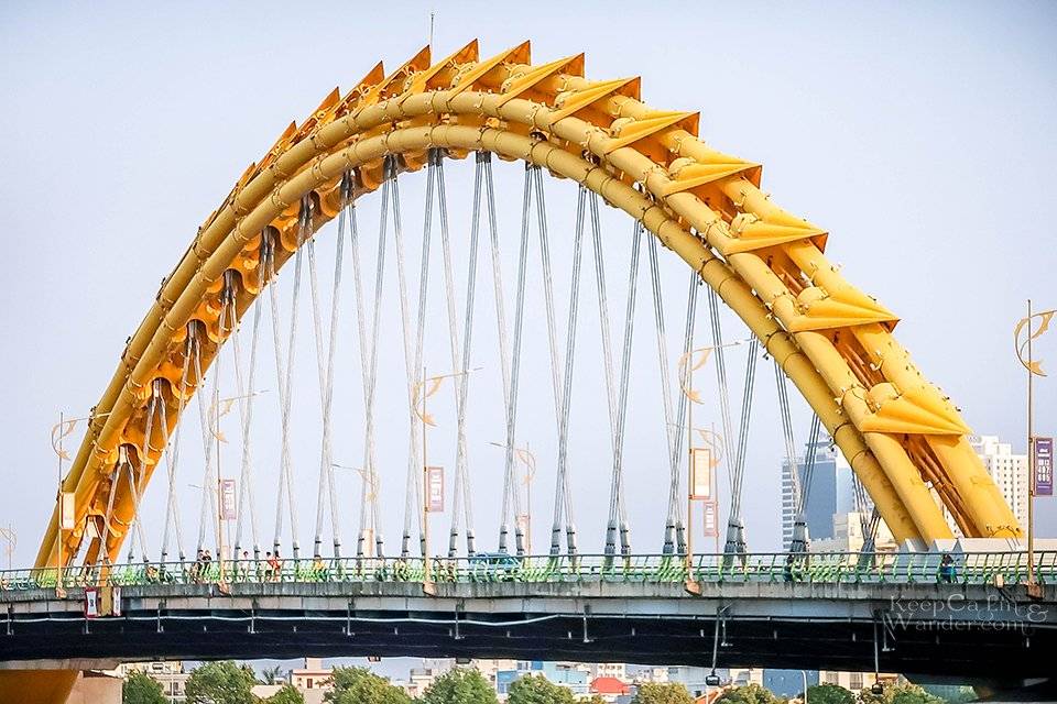 If you stay near the beach area, then go along Vo Nguyen Giap Street to My Khe Beach, then you will see the roundabout of Vo Nguyen Giap street and Vo Van Kiet street, then turn left, go straight around 1 km to another roundabout, go ahead and you can see this bridge.