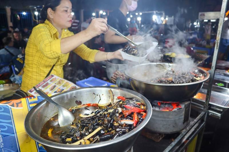 Colorful stands sell generic trinkets and souvenirs, from magnets to bowls and jewelry. However, the best part of Son Tra is definitely its street food selection. Da Nang is known for seafood and this night market really shows out!