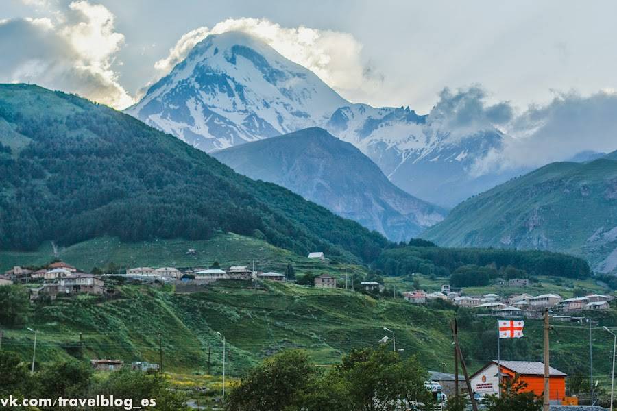 Ночью было прохладно, все-таки Казбеги находится на высоте почти 1750 метров. А еще очень громко выли собаки и до мурашек ужасно орали какие-то звери. Мы решили, что это коровы, а скорее всего одна дикая корова, наверное заболела… В общем, ночью мы спали плохо. Но это не повлияло на наше настроение с утра:) День обещал быть хорошим и безоблачным, и вершину Казбека было отлично видно:)![]() |