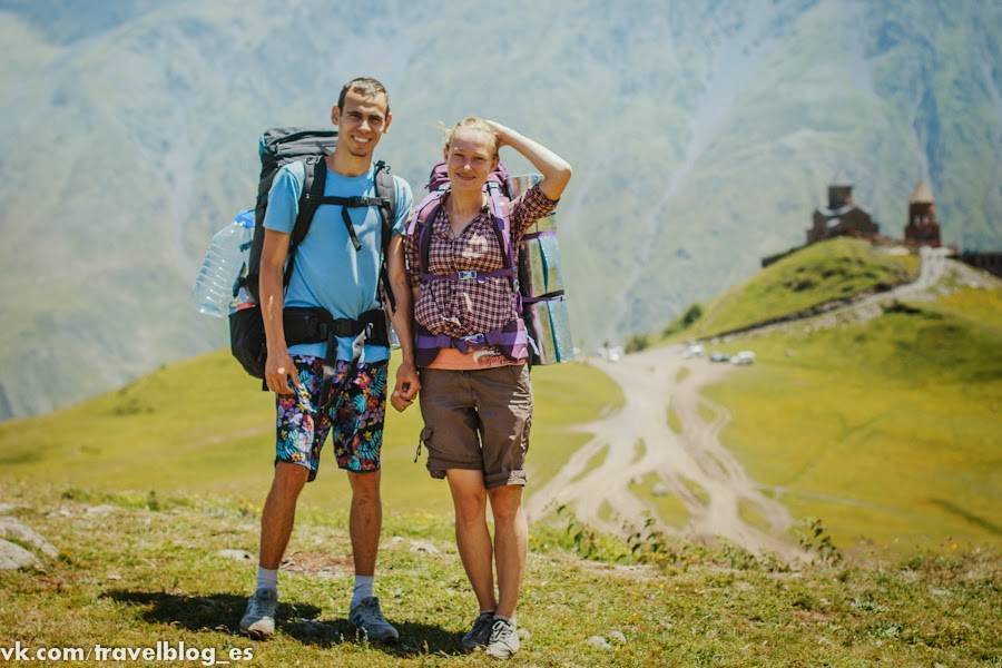- Пешком. Выглядит такая перспектива немного жутковато, уж слишком крутой кажется гора, но все не так страшно!:) Идти нужно через село Гергети, и когда выйдете к грунтовой дороге, можно срезать серпантин по крутой тропинке. Дорога занимает около двух часов, если останавливаться фотографировать и отдыхать:)