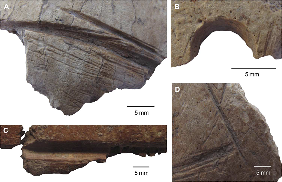 Изучив находки с помощью цифровых и электронных микроскопов, археологи заключили, что надрезы были сделаны с помощью каменных инструментов, исключив повреждения от клыков животных и другие естественные причины. Отсутствие признаков заживления указывает на то, что гравировку наносили после смерти. Однако сделаны надрезы были и не через продолжительное время после кончины владельцев.
