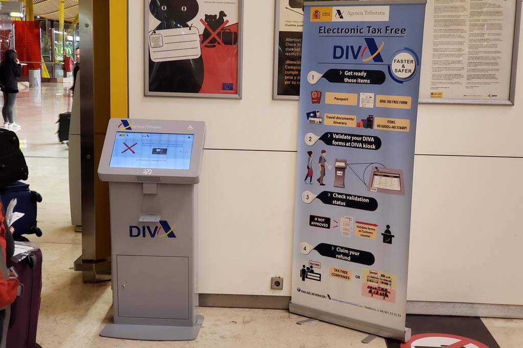 В Испании почти везде процесс возмещения НДС автоматизирован с помощью электронной системы DIVA. В мадридском аэропорту терминалы DIVA можно найти в здании Т1 (общий зал) и Т4 на 1 и 2 этаже.
