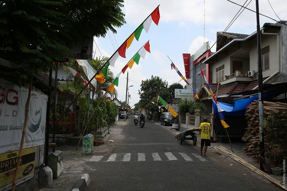Так что вернемся в Джокьякарту и не будем больше отвлекаться на песни путеводителей. Улицы украшены флагами на палках.
