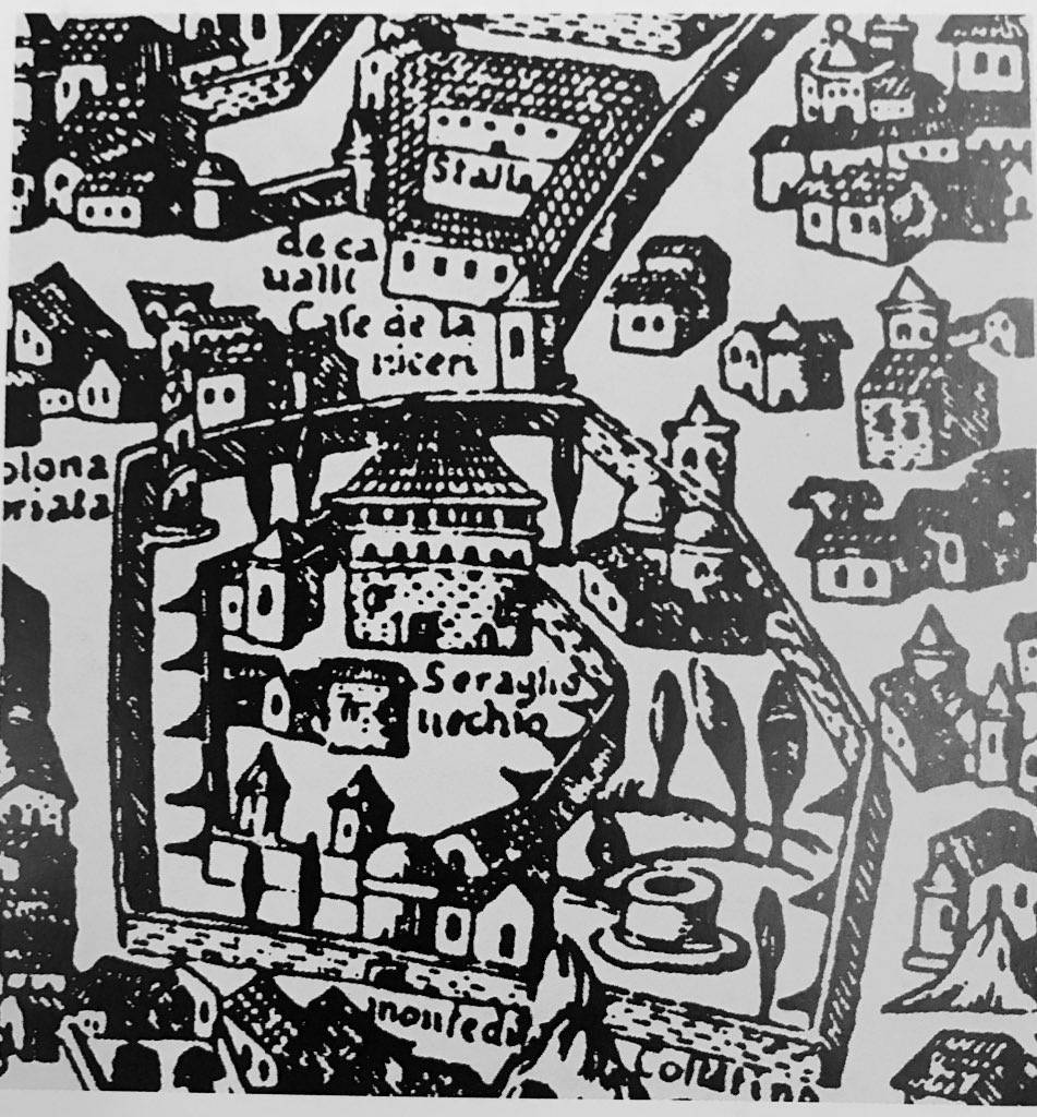 Старый дворец на гравюре венецианца Джованни Андреа Вавассоре (Seraglio vechio – старый дворец)
