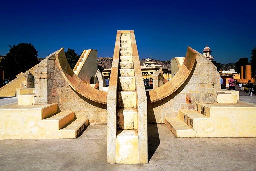 - Индия – страна огромных солнечных часов. В столице штата Раджастхан, городе Джайпур, рядом с обсерваторией, находятся самые большие солнечные часы в мире. В XVIII веке их создал индийский князь Савай Джай, страстно любивший астрономию и математику. Сооружение под открытым небом, представляет собой сложнейших механизм, состоящий из четырнадцати устройств.